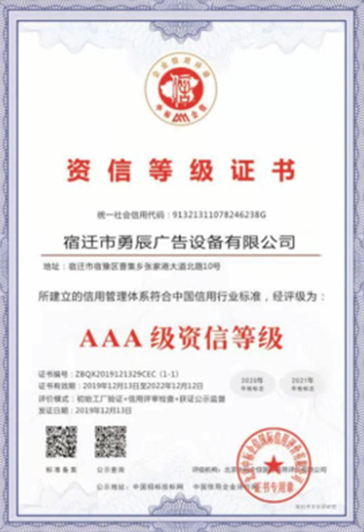 資信等級證書