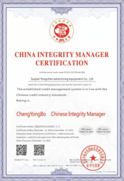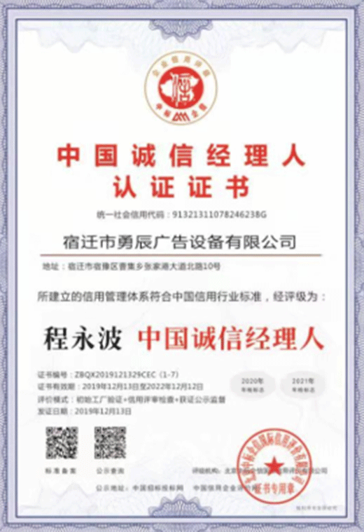 中國誠信經(jīng)理人認證證書